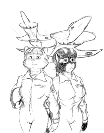 28 August, 1997 Kate and Fiona both return today, with a little more development to their background. Having finally come up with a good craft design (a little project I've been working on for months), I've finally also been able to give them a unit: the 33rd Orbital Wing. This at least gives me a good backdrop for story ideas. Now if I can just make time to develop them...